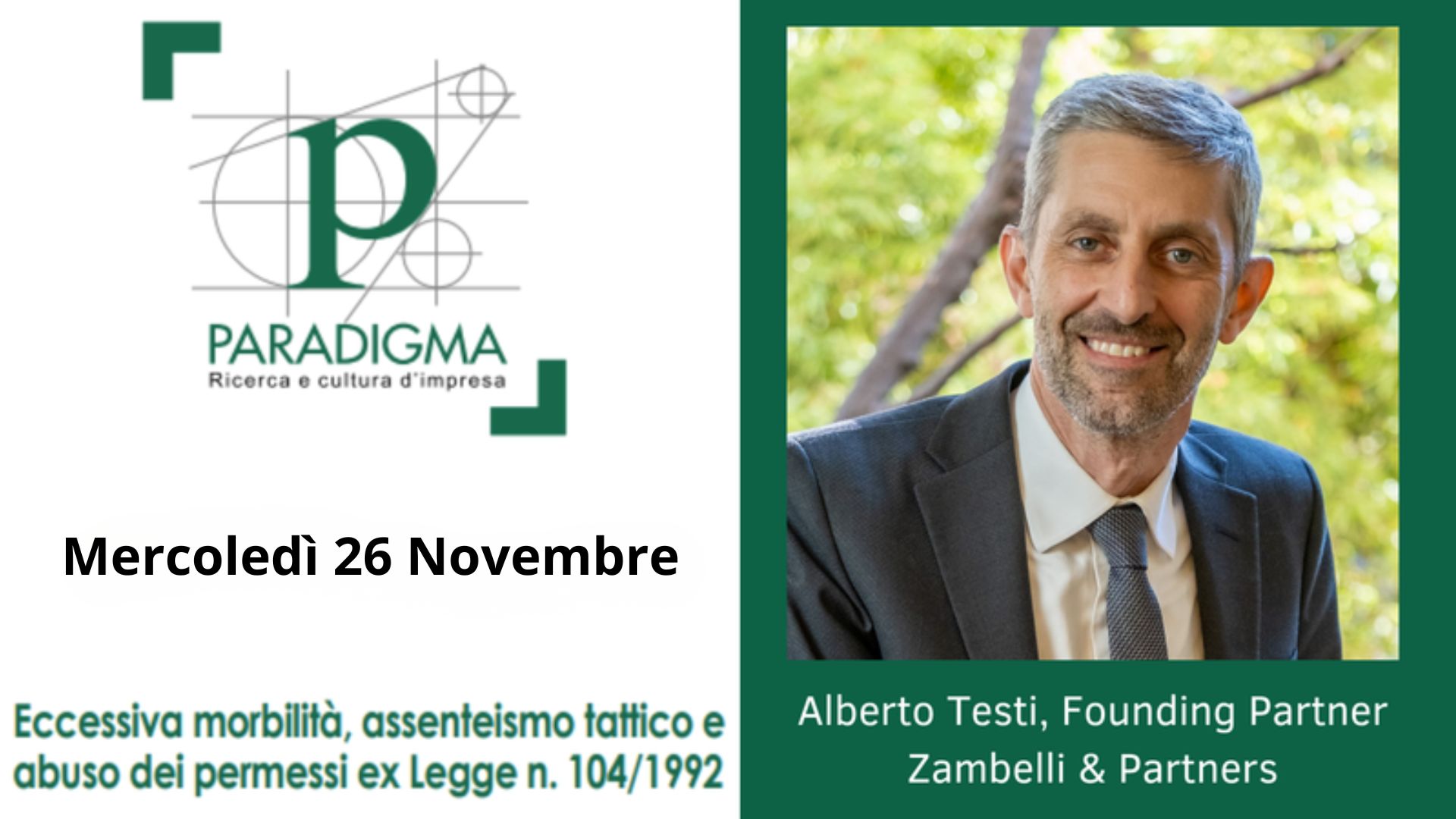 Maggiori informazioni sul seminario sono disponibili qui:https://paradigma.it/iniziativa/eccessiva-morbilita-assenteismo-tattico-e-abuso-dei-permessi-ex-legge-n-104-1992/#programmadf7c-7d3b