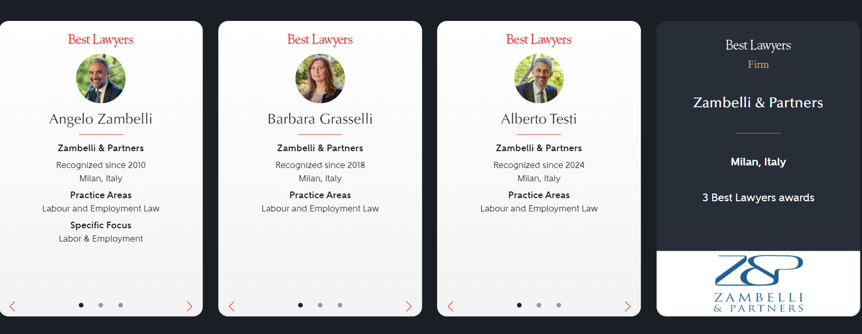 The 2025 Best Lawyers in Italy for Labour and Employment Law are published here: https://www.bestlawyers.com/italy/milan/labour-and-employment-law