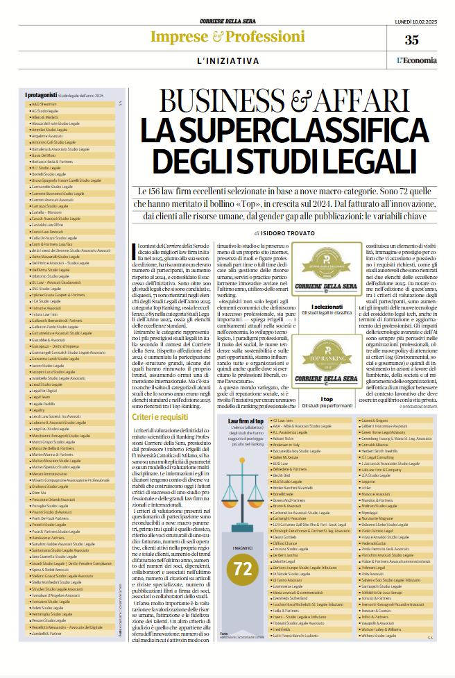 La ricerca è stata condotta nell’ambito del contest – Ranking Professionisti 2025. I Risultati sono stati pubblicati dal Corriere Economia.
